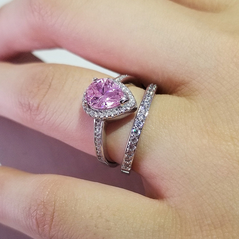 925 Sterling Silver Ring Set – Pink stone
